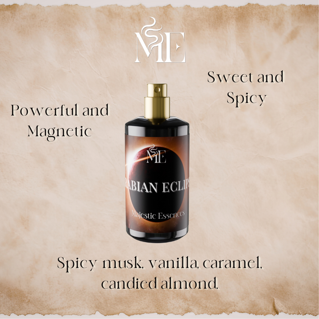 Introducing Arabian Eclipse by Majestic Essences — a captivating unisex fragrance inspired by twilight in the desert, where sweetness, spice, and mystery intertwine.